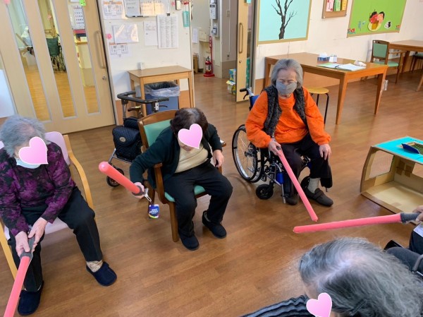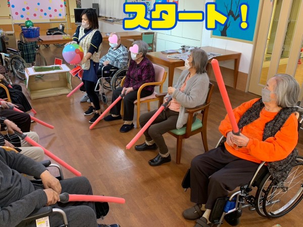 今日のレクリエーションは『棒サッカー』