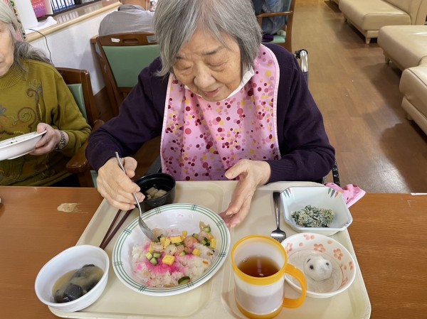 ばらちらし寿司にデザートには吹雪饅頭があります。