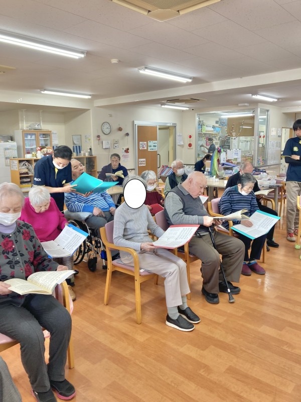 皆さん、時間を忘れて歌を歌っておられました。この後、おやつとなりました。