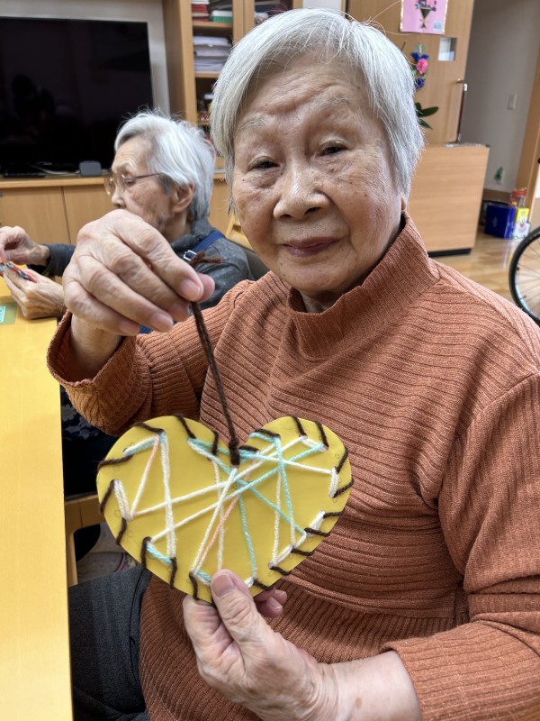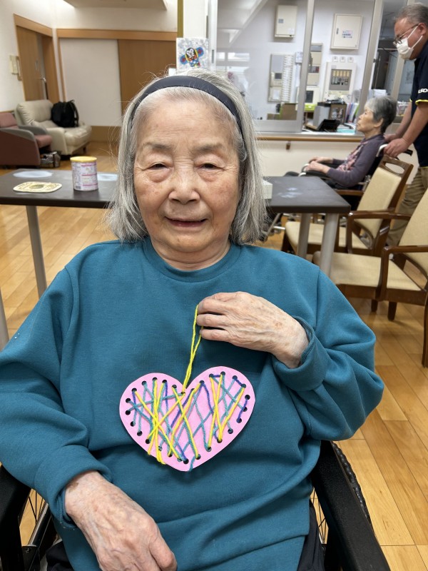 2月のバレンタインデーに先駆けましてハートの形を使った制作レクを行いました。
