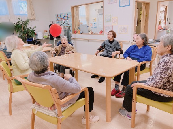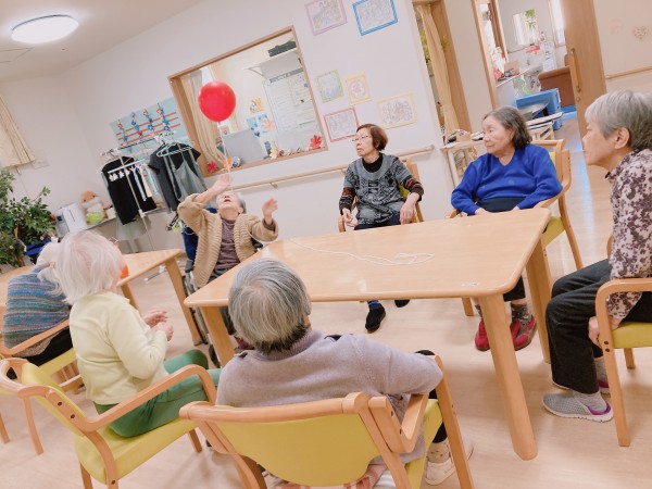 とある日のレクで風船バレーを行いました!(^^♪