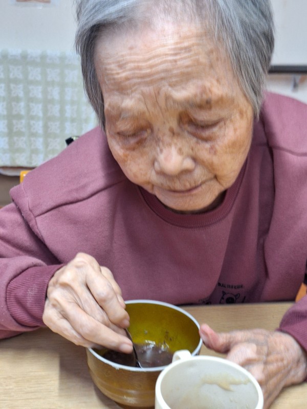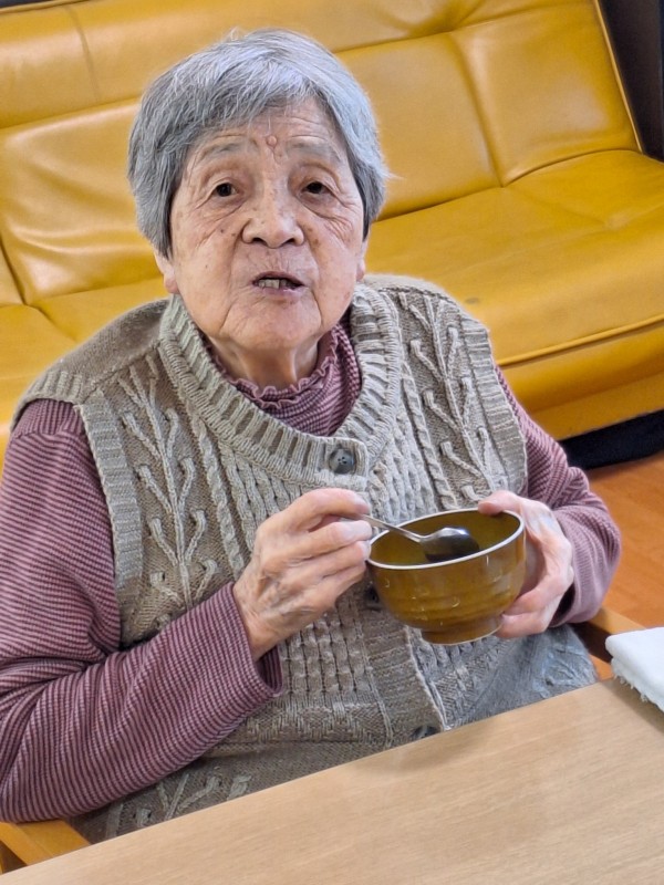 皆様「おいしいおいしい」と召し上がってくださり、いつもなかなか左手が出ない入居者様もなんとご自分でお椀を持っている( ゚Д゚)