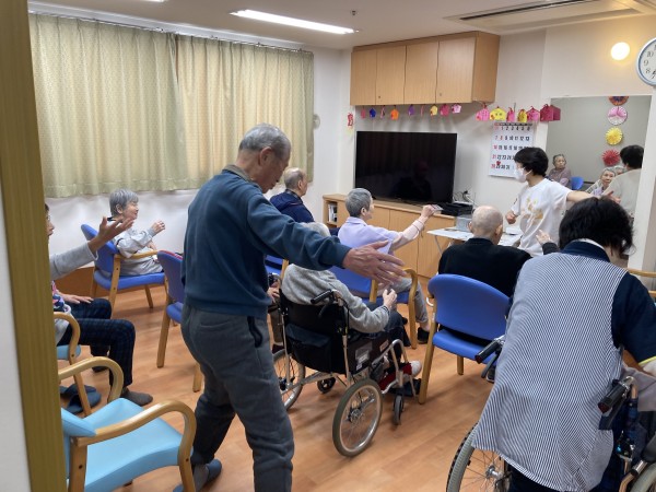 音楽に合わせて身体を動かず「いきいきリズム体操」や
