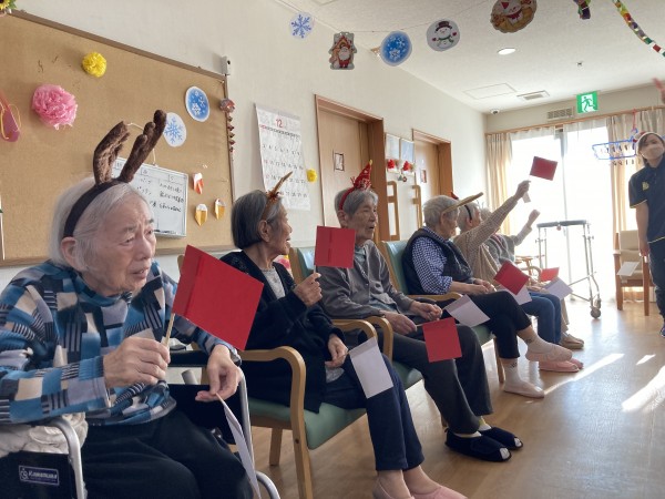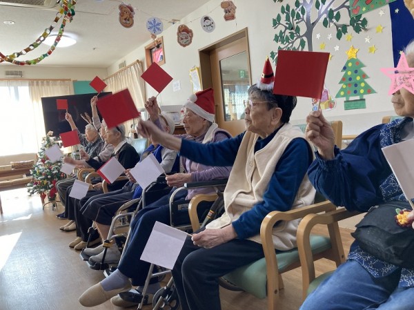 サンタさんと準備運動したり、旗揚げや合唱もしました(^^♪