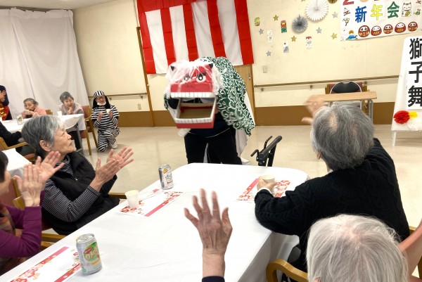 獅子舞による華麗な舞いの後は、愉快なスタッフによる二人羽織です\(^o^)/
