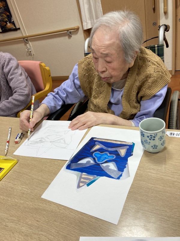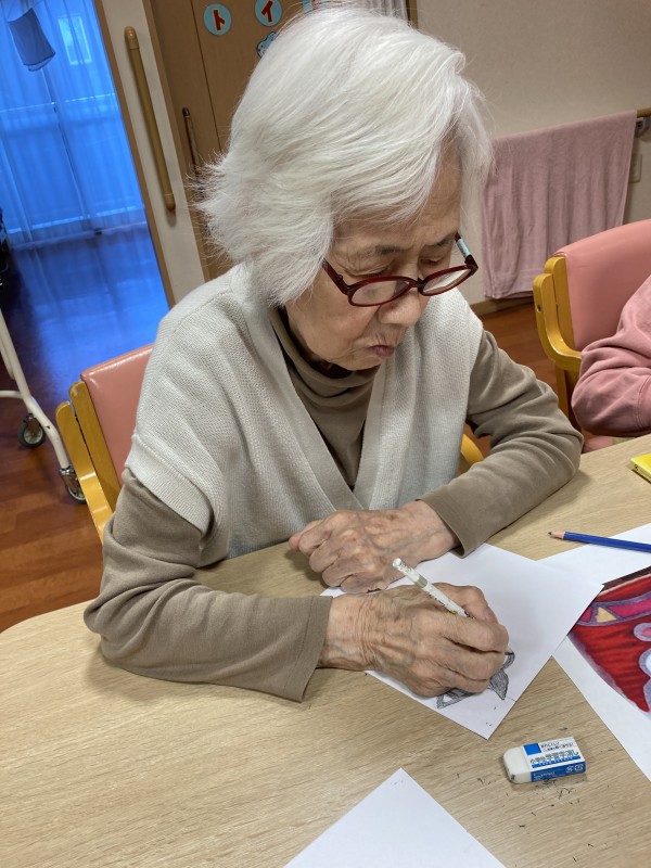 鬼の絵を見本をみながら