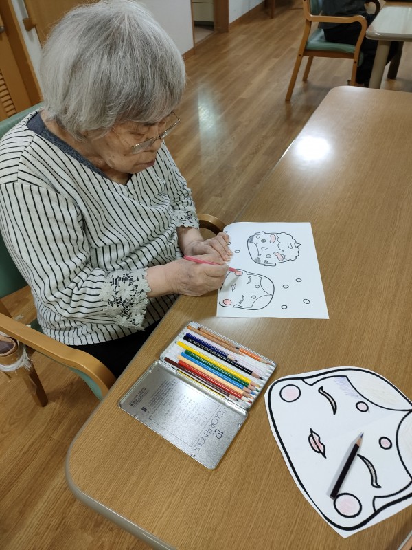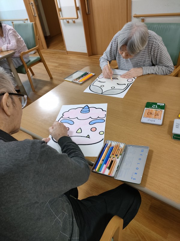 みんなで塗ると個性豊かな鬼とおかめになってきれいになりますね(*^▽^*)