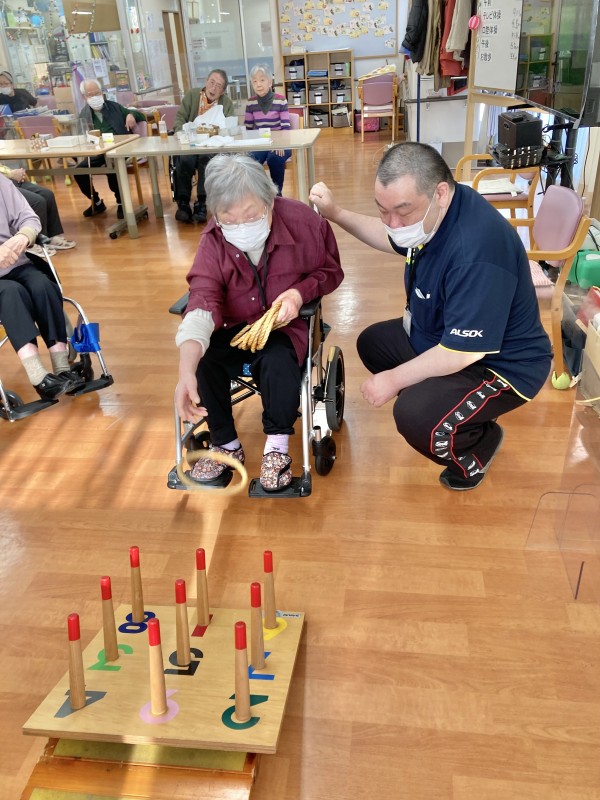 今日は、輪投げ台に書かれている点数、縦・横・斜めにビンゴボーナス5点を追加して行っています。