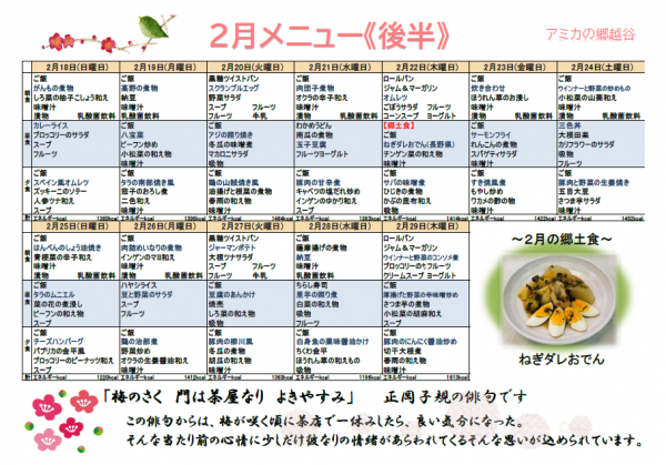 2月の献立表