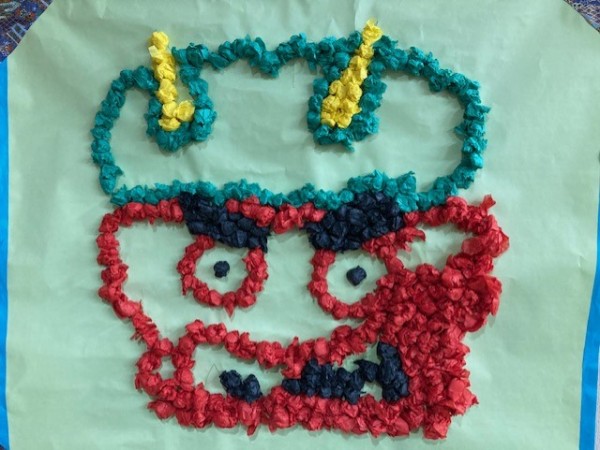 お花紙を切ったり、丸めたり、張り付けたり、