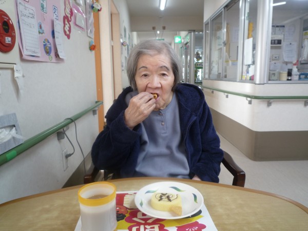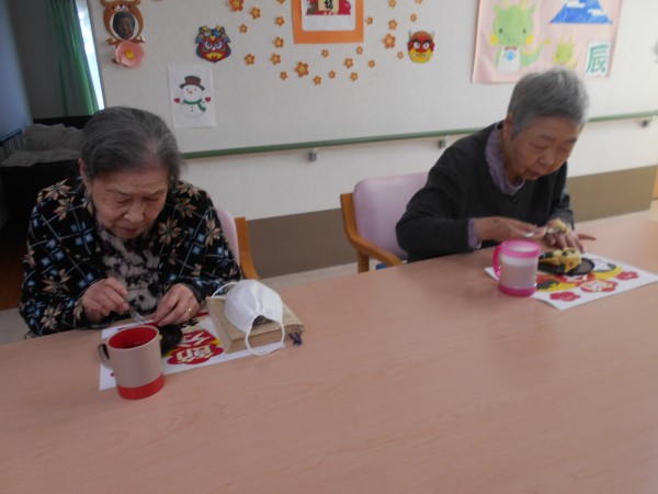 豆まき後のおやつの様子を
