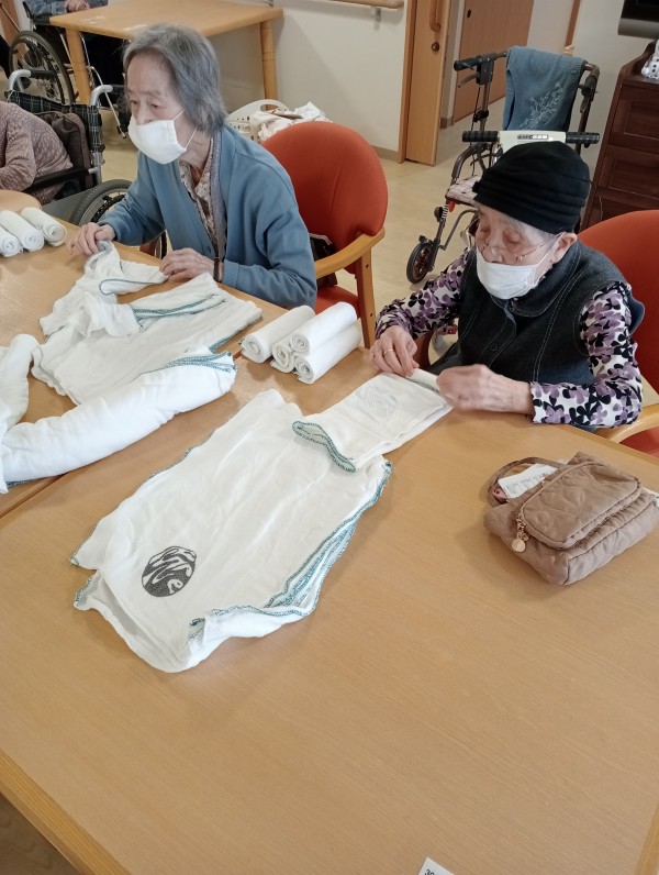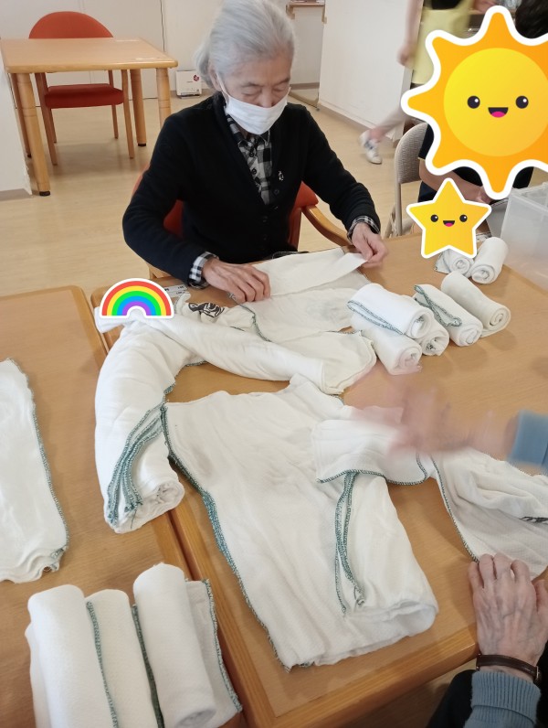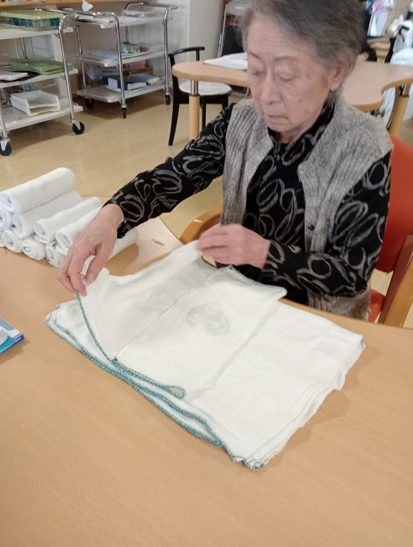 タオル畳みのお手伝いをしてくださっています☆