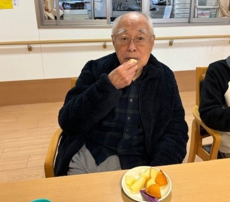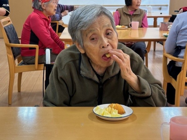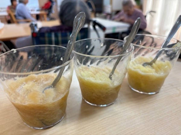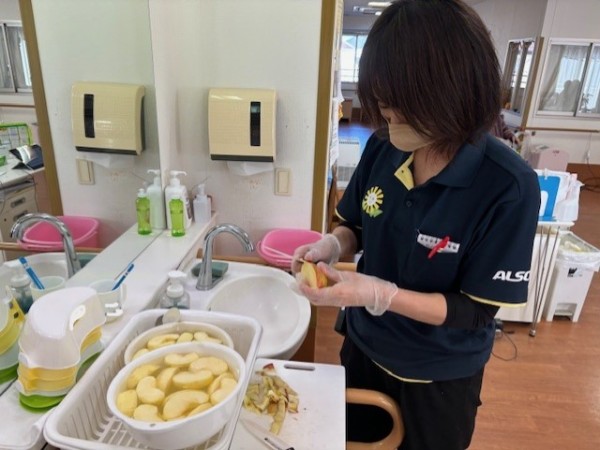 先日誕生日会を開催し誕生日の方にはケーキを、他のご利用者様にはりんごをご用意しました