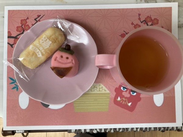 豆まき後は、可愛らしい鬼の和菓子を召し上がりました(*^▽^*)