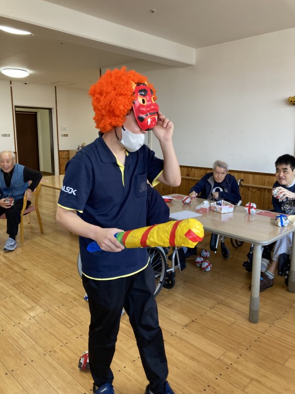 当施設では、昨日に一足早く、節分の豆まきを開催しました!