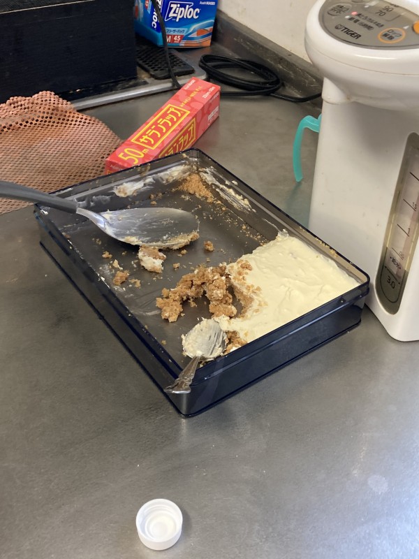 食材としてあったのはチーズとクッキーがあったので皆様にチーズケーキを振舞ってみました。