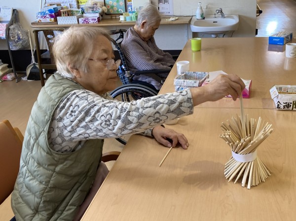 今日は、割り箸ジェンガのご紹介をします。順番に割り箸を抜いていくゲーム。バランスを崩し倒してしまった方が負け。割り箸をたくさん抜いた方が優勝。非常に単純なルールですが、皆さん、いつもヒートアップします。