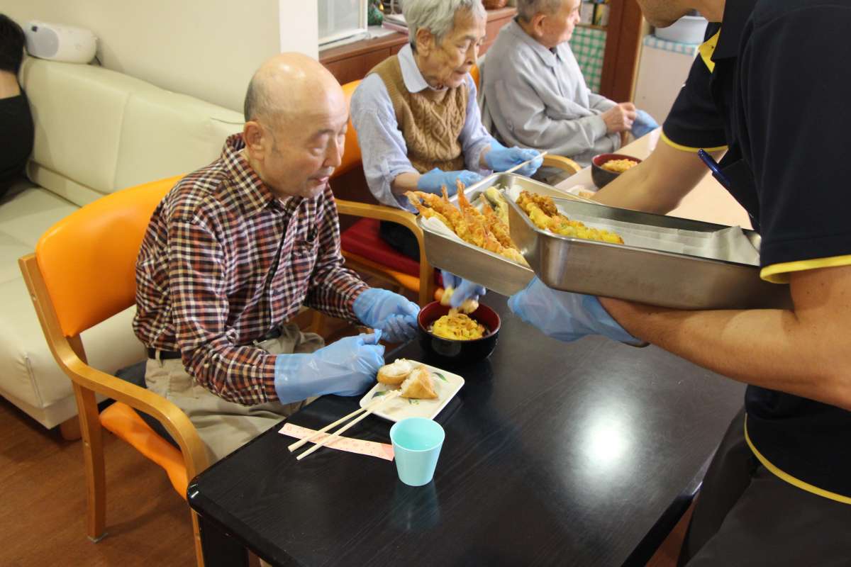 天ぷらの種類は好みもありますのでご利用者様に決めて頂いて、召し上がっていただきましたが…。