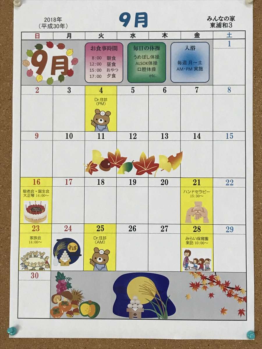 今月は、敬老会にてボランティアさんによる大正琴の演奏、近所の幼稚園児の来訪と、利用者様に元気になって頂ける様なイベントを準備しています!