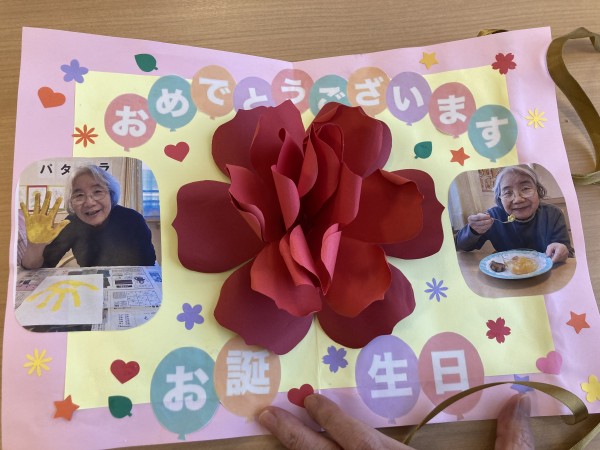 スタッフから誕生日カードをプレゼントすると笑顔で受け取って下さいました。