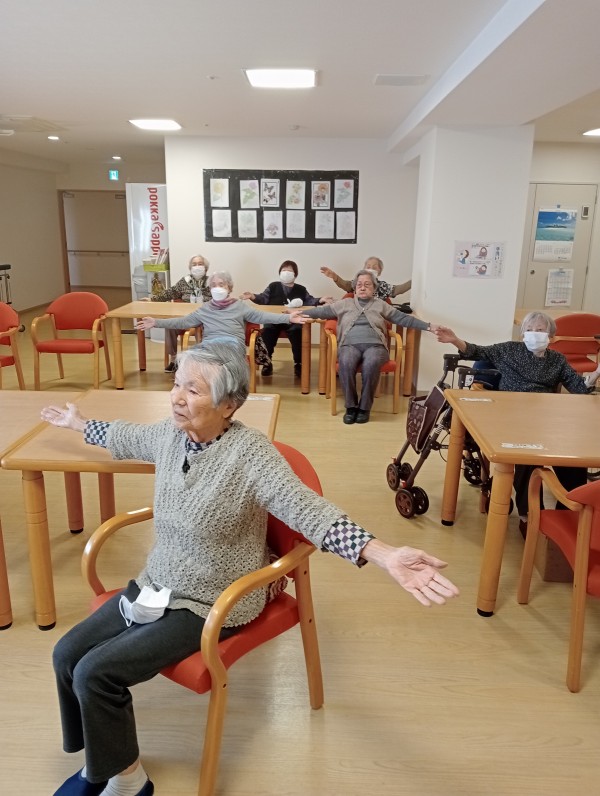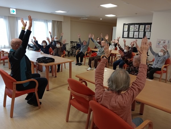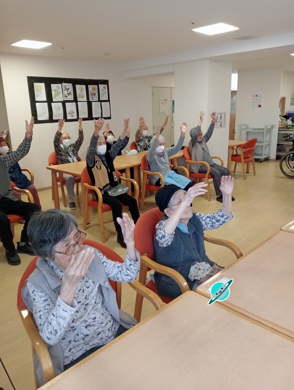 タオルを使ったり、手を上げたり、伸ばしたり・・・