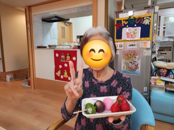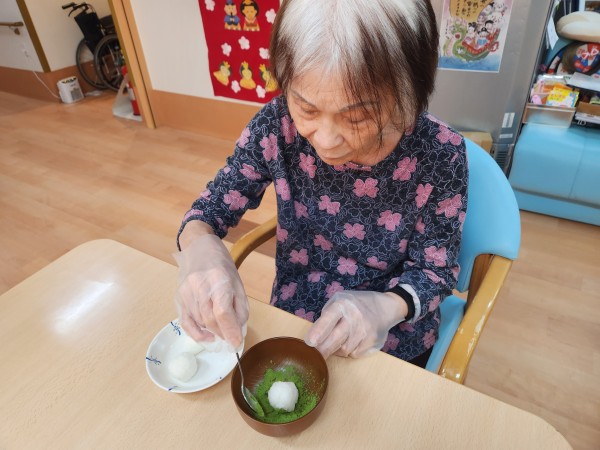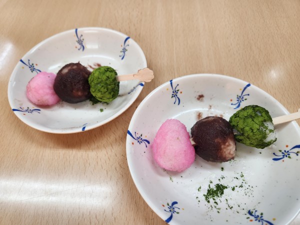 みんなの家墨田2Fでは3月3日ひな祭りにちなんで「三色団子」を作り