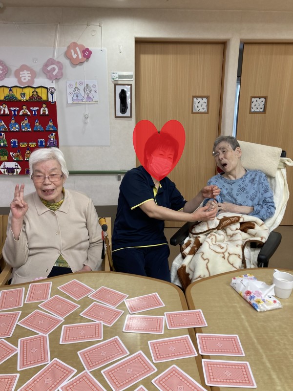 こんにちは!今日のレクリエーションはトランプで神経衰弱を行いました。めくってその場はカードを覚えますが職員も直ぐに忘れてしまいなかなか終わらずでした('◇')ゞ でも何とか時間をかけてゲーム終了!wwwww 職員も利用者様も盛り上がり笑いも出て楽しいひと時となりました。