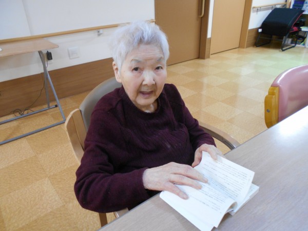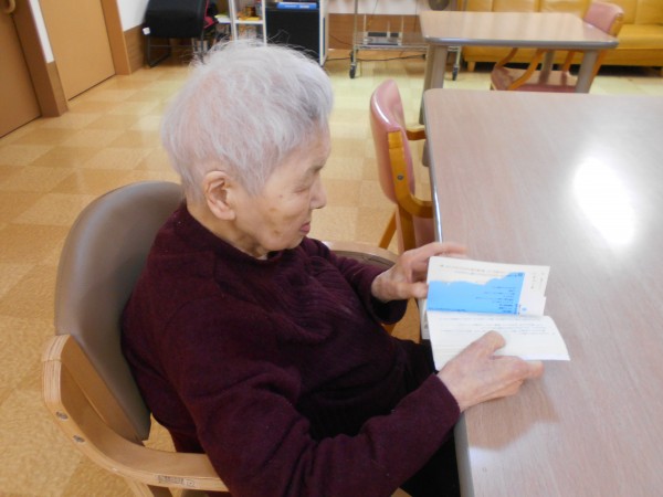 そんな中・・・早くに歯磨き等済ませたご利用者様が真剣に本を。。