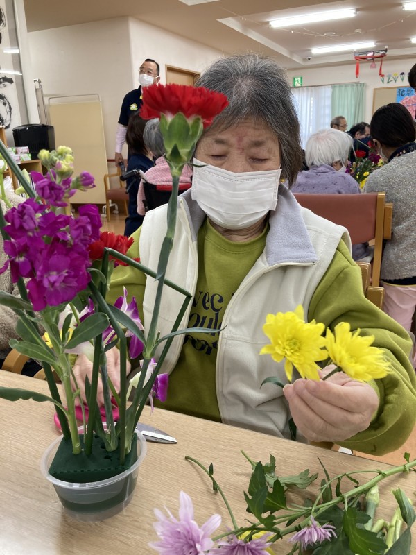 月に1回のデイサービス主催「フラワーアレンジメント教室」に参加しました!