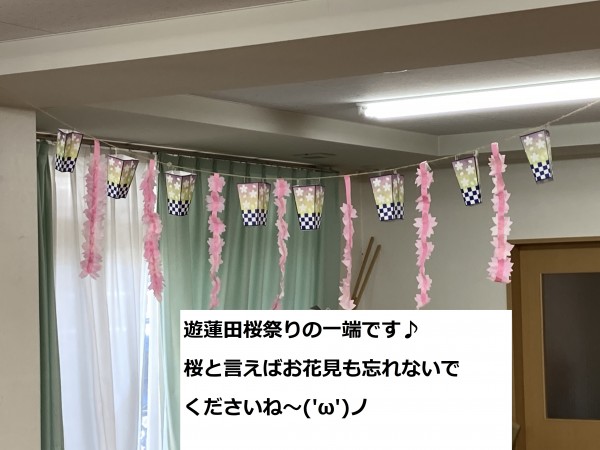 本日は遊蓮田で「桜の飾りつけ」を行いました。どんな様子だったのか、早速ご覧ください♪