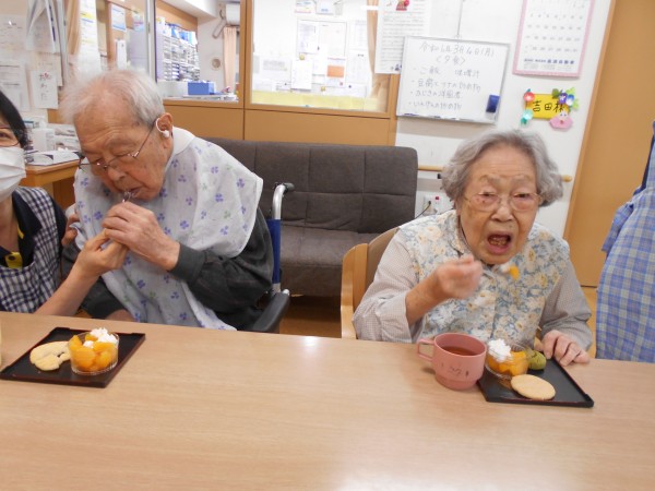 お祝いのおやつも皆さん美味しそうに食べてくださりスタッフも笑顔になりました~(#^.^#)