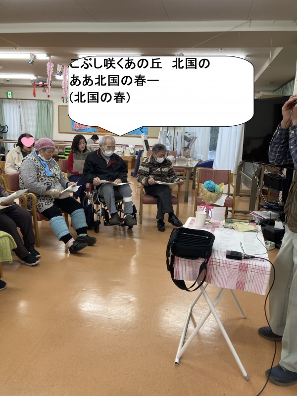 素敵なハーモニカ演奏と一緒にご利用者様も歌っていきます!しっかり声も出ていい感じです!!