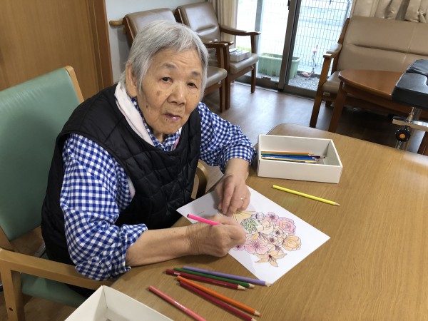 こんにちは! グループホームみんなの家・川崎野川南台です! 今日は数人が塗り絵を楽しみました(^^)/