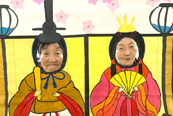 美味しいおやつの後は、皆様にはお内裏様とお雛様の顔はめパネルで記念撮影をしていただきました♪
