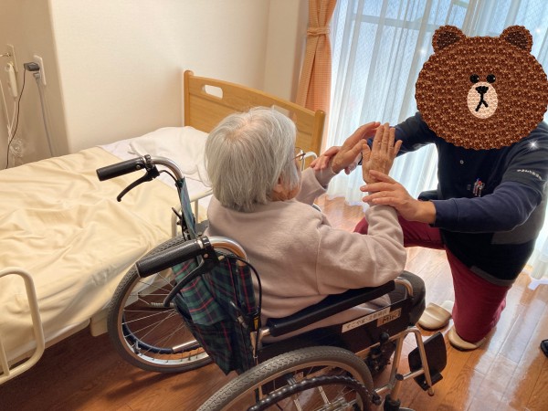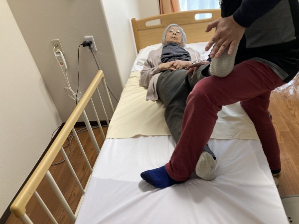 拘縮のある方には痛みの無いようゆっくり曲げ伸ばしを行います。