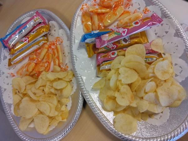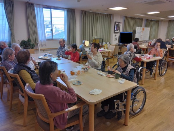 机を戻しておやつタイムです(^^)、皆で食べるとおいしいですね。