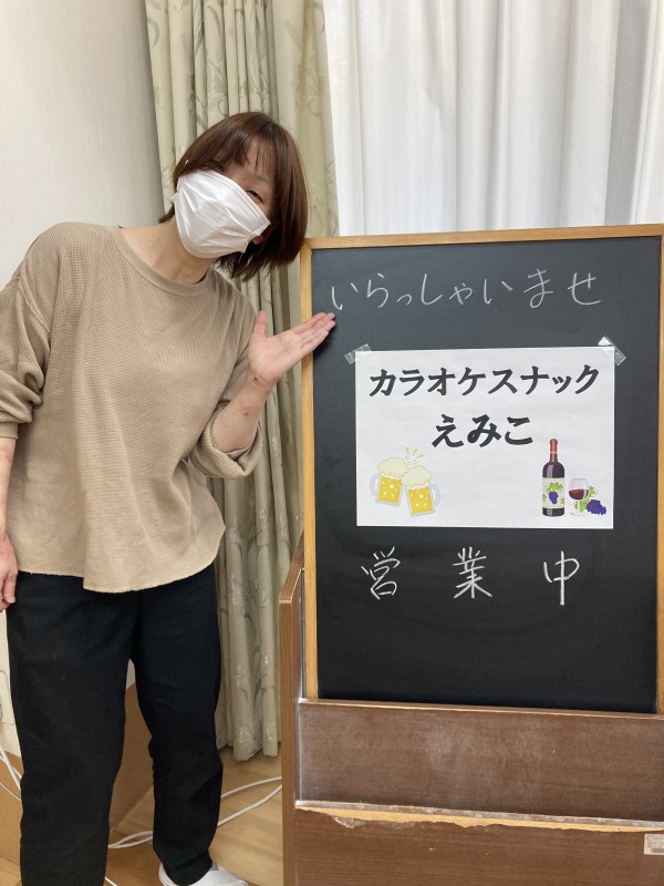 当施設で、『カラオケスナック・えみこ』が開店しました!(笑)