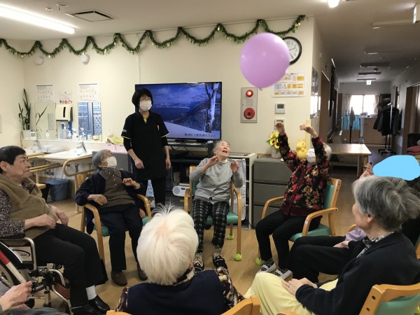 今回も利用者様に好評の風船バレーの様子をお伝えしたいと思います。