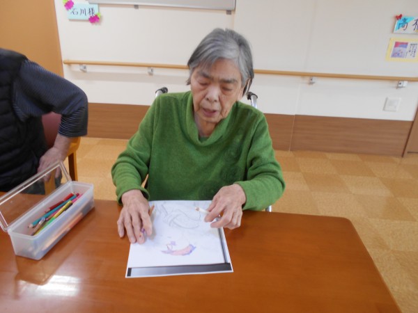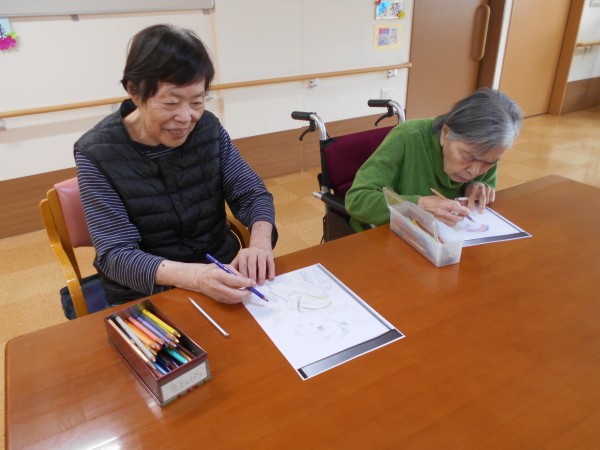 塗り絵やお昼寝、お話されたりと皆さん自分のペースで過ごされています!