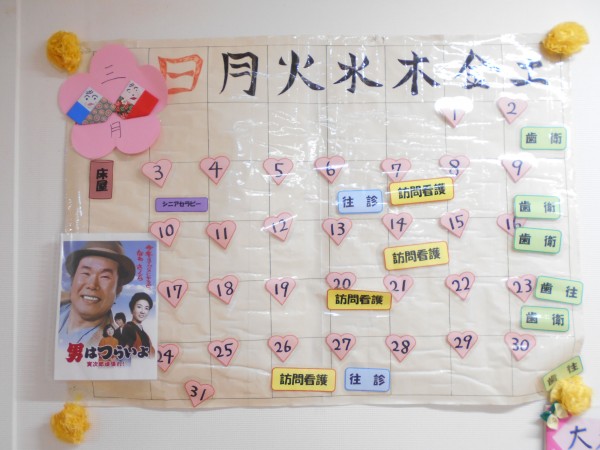 各フロアには大きなカレンダーがあり、ご利用者様は「今日は何があるかな」と予定を確認されています(^^)/