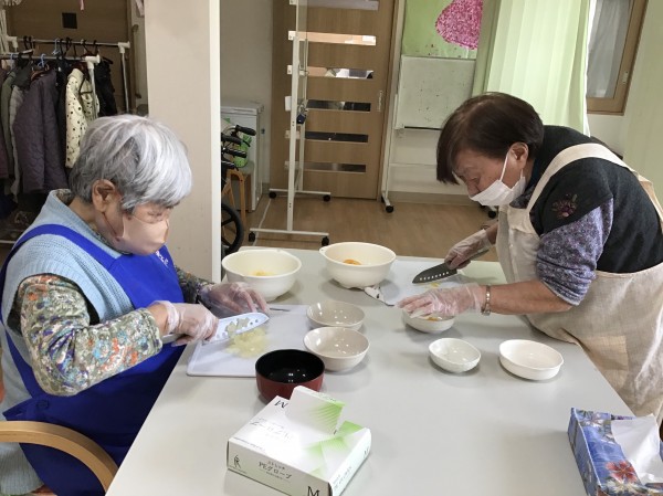 トッピングのフルーツをご利用者様にカットしてもらいます♪