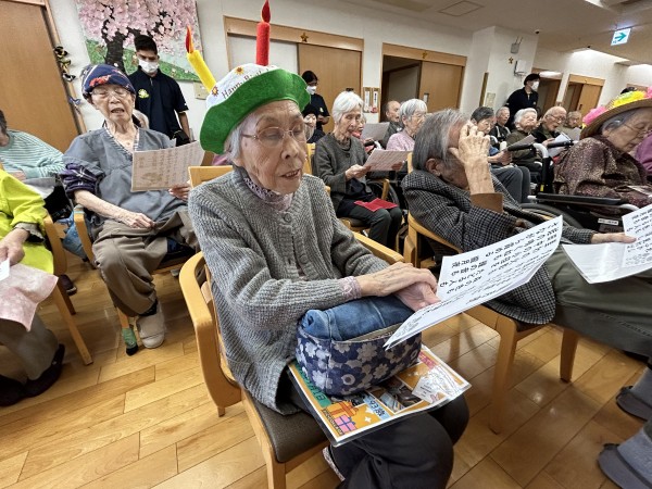 【幸せなら手をたたこう】は曲に合わせて手を叩いたり、肩を叩いたりしながら皆さん童心に帰り楽しそうに歌っていました(・∀・)イイネ!!