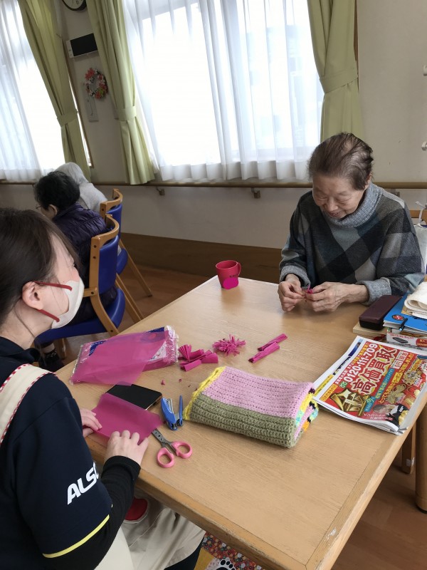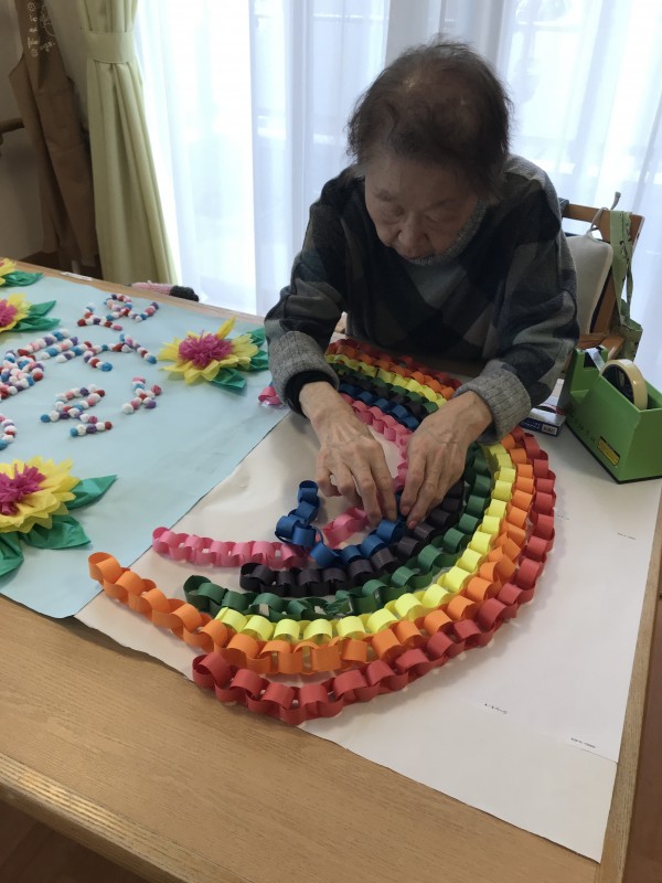 紙テープを使ってのロールピクチャー、お花紙を丸めて文字を書きましたっ!!