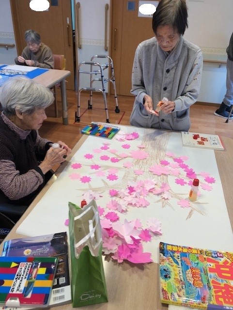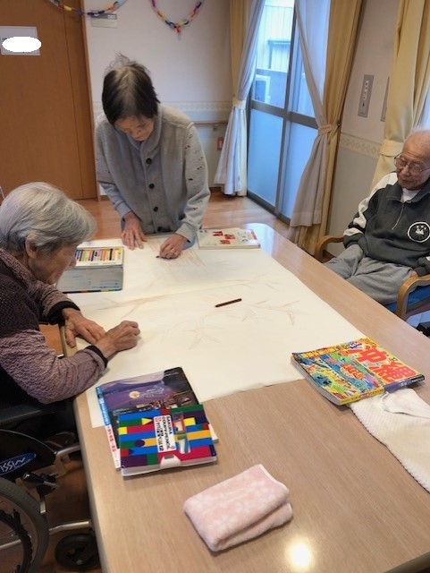 ご入居者様に色塗りをお願いしました。