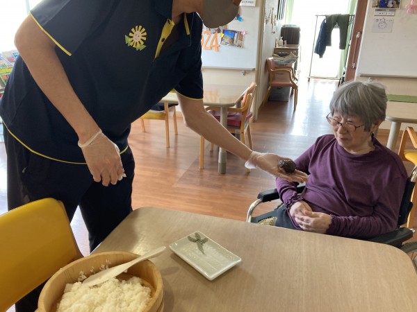 もち米を炊いて北海道産のあんこをペタペタ♪