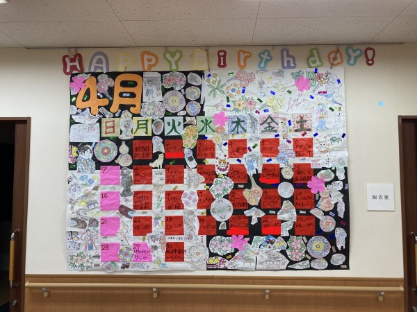 4月のレクレーションカレンダーを、貼り出しました!(^^)!