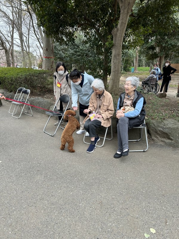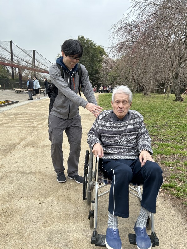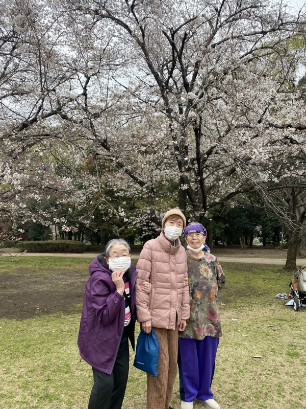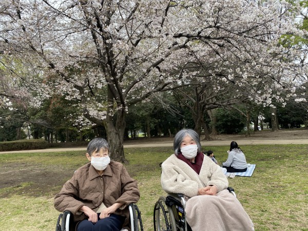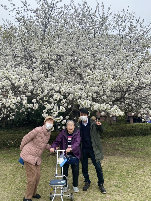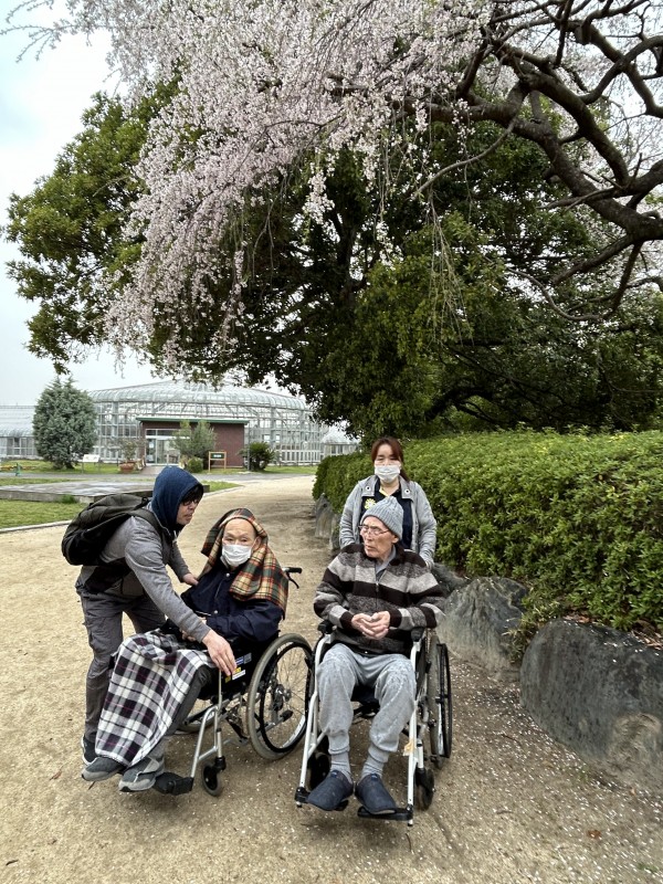 お花見の日はお休みの職員も散策のお手伝いに来てくれました。