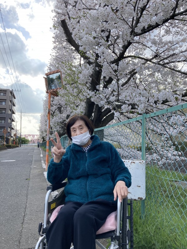 雨が降って桜が散ってしまう前に、入居者様達とお花見に行ってきました。