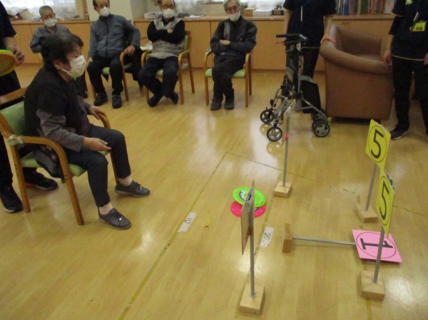 点数表示板を目指して投げましょう!倒れた点数の合計で競います!みんな頑張れ(^O^)/