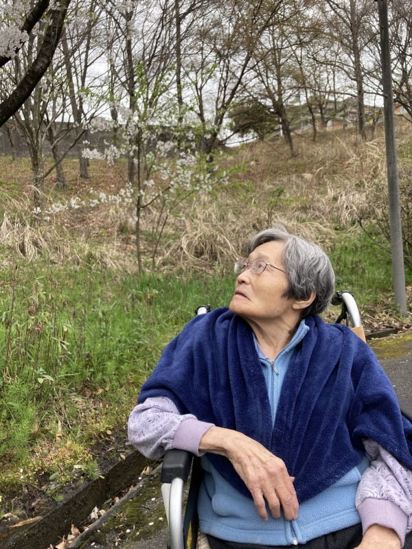 桜が散ってしまう前に、施設のすぐ近くにある桜の木を見にお花見に行かせていただきました(^^)/